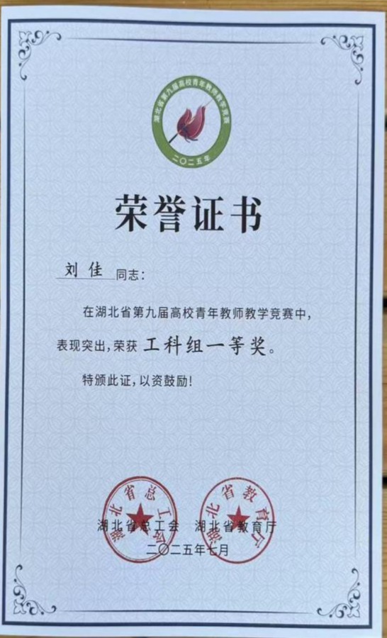 (通讯员刘静)近日,由湖北省总工会、湖北省教育厅联合主办,中国地质大学(武汉)协办的湖北省第九届高校青年教师教学竞赛圆满落幕,本次竞赛汇聚了全省54所高校的145名青年教学精英。Beats365唯一官网入口刘佳老师凭借扎实的教学功底、创新的教学设计和出色的现场表现,从众多参赛选手中脱颖而出,荣获工科组一等奖,实现公司在该赛事中的历史性突破。