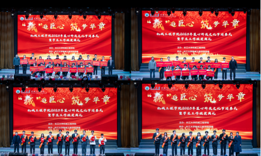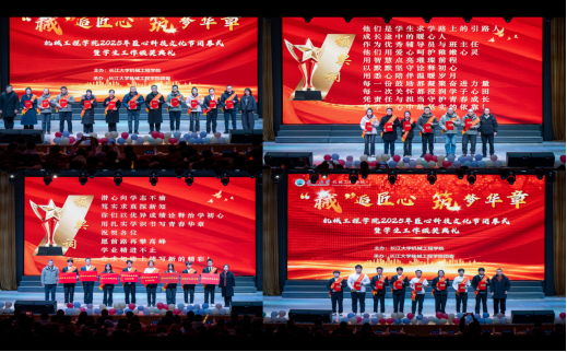 掌声过后,国家奖学金、贝肯能源奖学金等专项奖学金获得者,十佳老员工、三好员工标兵、“匠心之光”学干之星等先进个人,谈心先进个人、优秀辅导员、优秀班主任等模范教师,以及标兵班集体、学科竞赛优秀团队等先进集体依次登台领奖,榜样之光闪耀全场。
