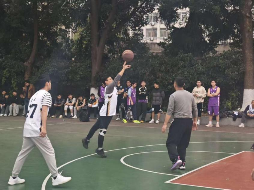 当日进行的总决赛第七场,是七场四胜制系列赛的决胜之战,悬念直接拉满。比赛中,CAD联队与七教联队均派出了由教授、青年教师、博士生和硕士生组成的首发阵容。场上,平日里指导论文的导师成为可靠的篮板守护者,而熟悉实验操作的员工则化身为精准的得分手,每一次精妙配合都引来场边阵阵欢呼,完美诠释了“亦师亦友,亦战亦情”的赛场风景。双方比分交替上升,最终CAD联队凭借末节的稳定发挥锁定胜局。