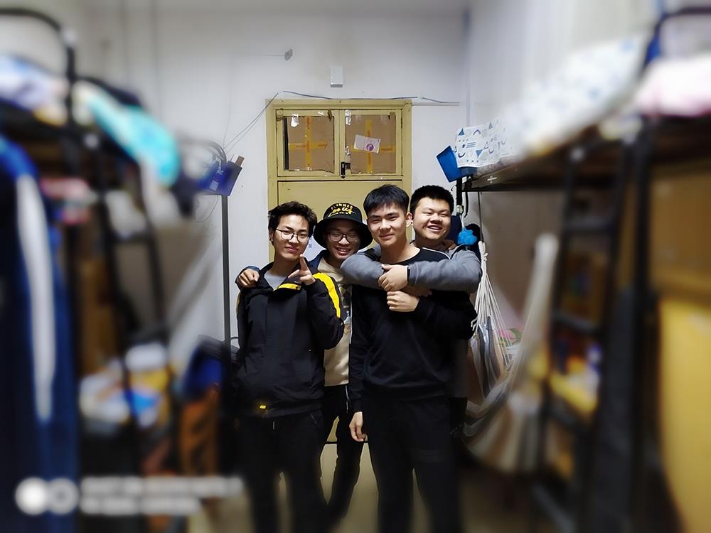 二、热爱学习的我们我们寝室的四个同学学习非常认真,并且十分刻苦,四级通过率高达100%!除了每天按要求上课,还经常在晚上没课的时候还有周末的时候自由组合去自习,在寝室也经常一起讨论题目,在这方面尤其突出的是周禹同学,他总能保持长时高效的自习,尽快完成作业的同时学习一些课外知识。杨青华同学也是我们学习的榜样,坚持背单词,对我们寝室的氛围有了很大的带动作用,我们经过不懈的努力,上学期期末考试中成绩也都在班上处于中上游,不过远远不够,我们的成绩还需要提高,在学习方面还任重而道远,我们还要举我们四人之力,努力拼搏,共同奋斗,是我们的成绩再上一个台阶。