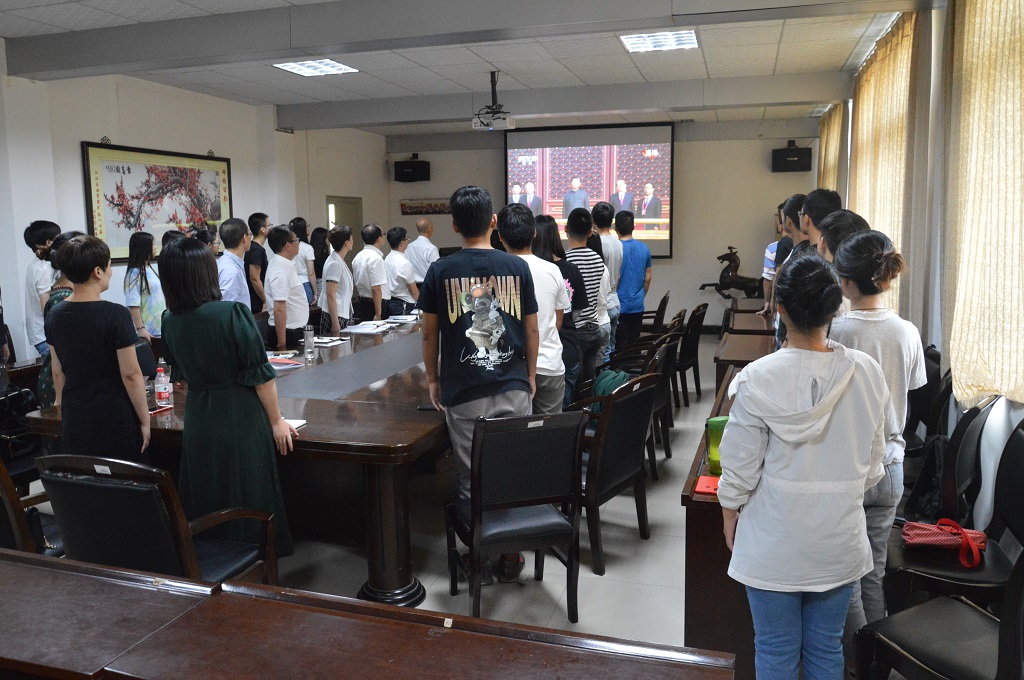 学习会后,中心组成员和部分师生代表一起观看了庆祝中华人民共和国成立70周年的盛大阅兵仪式,并进行了观感交流。
