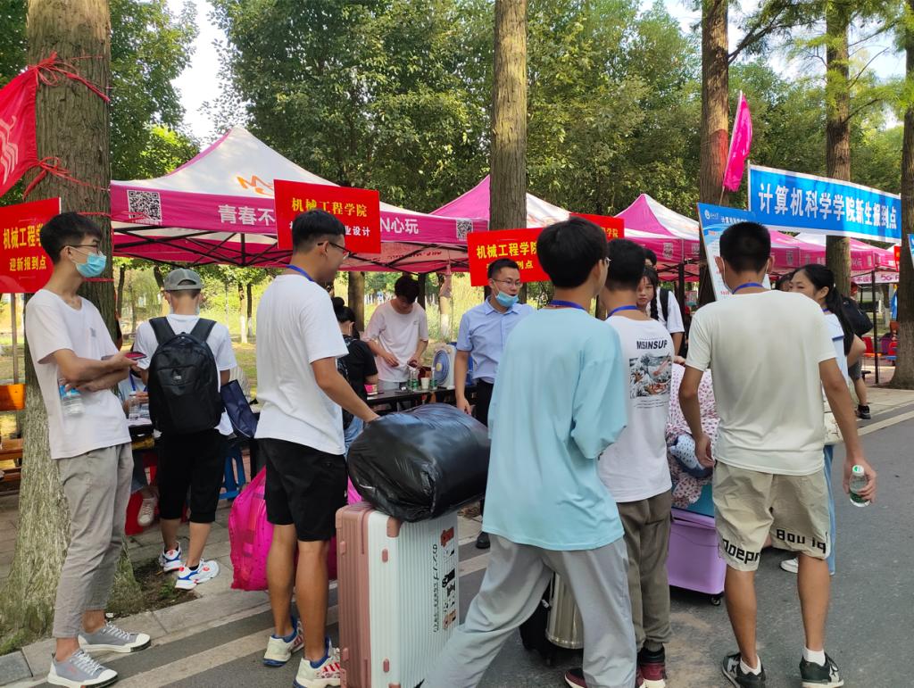 “公司真的是想得太周到了,行李有转运车,公司安排小推车,省时省力。”从校门口到宿舍门口,全程都有志愿者提供帮助。今年因家长不能进校,志愿者迎新的难度增加。员工干部、党员同学主动请缨,纷纷前来助阵,尽管汗流浃背,但看到新生顺利办完手续,他们都满意地笑了。