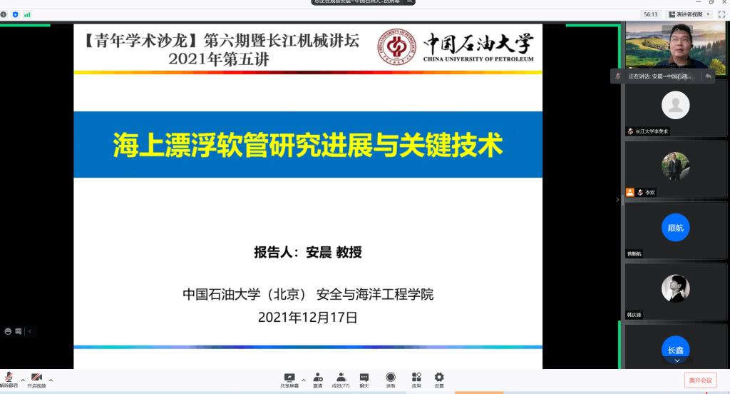2021年12月17日(星期五)下午14:00,公司通过线上腾讯会议的方式成功举办青年学术沙龙第六期暨长江机械讲坛第五讲活动,会议荣幸邀请到中国石油大学(北京)安晨教授和张玉教授为大家做了精彩的报告。