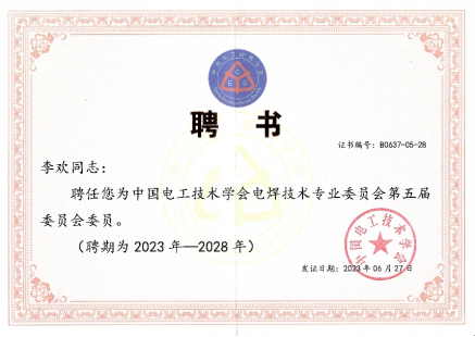 专委会成立以来,公司李欢委员积极参与专委会各项建设工作,在中国电工技术学会的领导下,积极组织开展国内外焊接技术领域的各种活动,加强了Beats365唯一官网入口与其他兄弟院校、科研院所的交流合作。