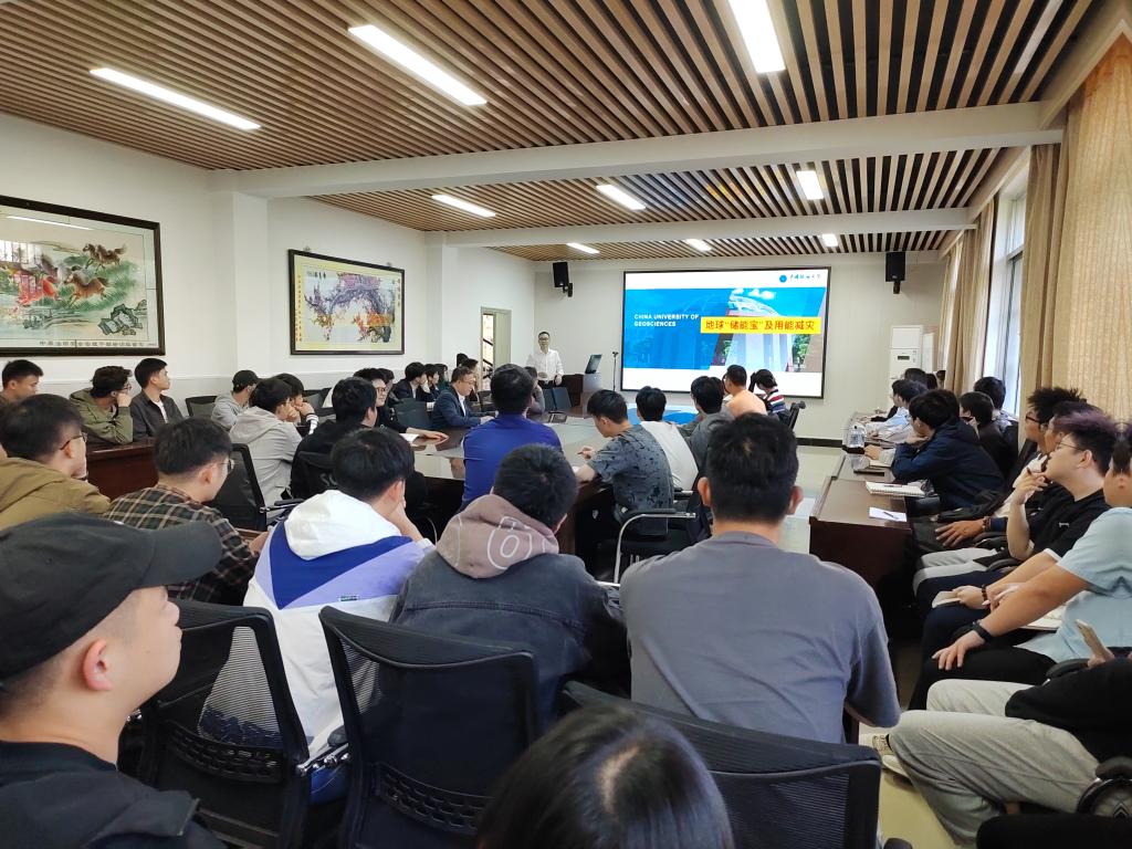 窦斌教授首先为大家带来的精彩报告是“地球“储能宝”及用能减灾”,他介绍了地球的起源及全球气候变暖等方面的内容,并详细地阐述了地热能的分类及开发利用,重点介绍了我国的能源结构发展与清洁能源开发情况以及地球储能如何助力我国早日实现“双碳”目标问题。窦教授为我们详细地分析了地质能源与地质灾害的关系,提出在利用地质能源的同时,需要高度重视地质灾害的预防和防范工作。随后,参会师生就地热能当前应用情况与窦教授进行了交流。