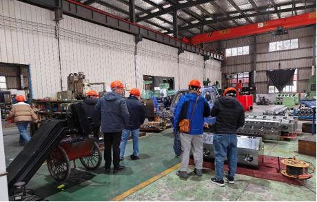 最后,刘少胡一行参观了湖北中油科昊机械制造有限公司的生产车间和实验室。全方位了解了该公司关于压裂设备、固井设备、连续油管等作业设备的生产与技术革新历程,油田环保设备、液氮注入设备等的技术创新和发展现状,双方希望能进一步加强交流与沟通,并期待深入深化校企科研项目合作和员工实习实训,更好地服务于企业实际生产中遇到的困难、机械与石油特色团队建设以及老员工工程创新实践与能力培养,共解技术难题。走访期间,刘少胡副经理一行参观了湖北佳业公司车间。