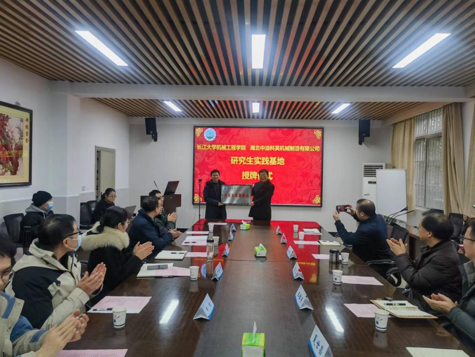联谊活动首先在“校企座谈会暨研究生实践基地授牌仪式”中拉开帷幕,来自中油科昊公司领导与公司领导、教师与员工代表进行座谈。首先赵晋敦副总经理对中油科昊企业的历史、发展及主要生产产品进行了介绍,副经理刘少胡结合机械公司的沿革、发展及主要研究方向进行了说明;随后,双方围绕校企联合研究、研究生实践基地建设、本科生实习就业等展开了深入交流,并重点结合人才培养、人才招聘进行了沟通;最后,Beats365唯一官网入口经理李美求为湖北中油科昊机械制造有限公司“研究生实践基地”授牌,副书记丁明霞为该公司“实习就业基地”授牌。座谈会期间,公司研究生、本科生还就招聘信息与企业和公司领导进行了深入交流。