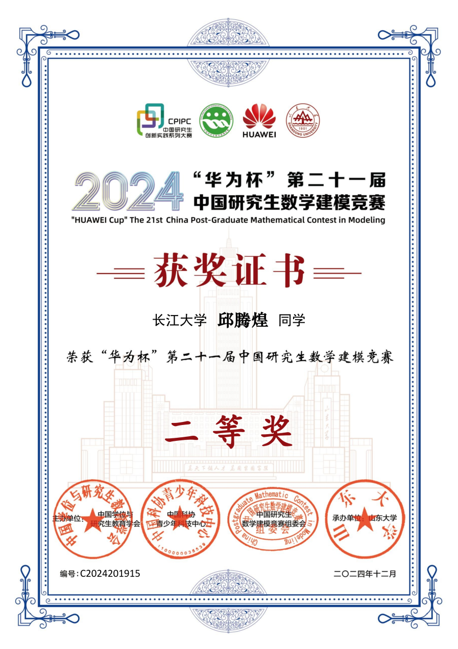 【员工竞赛】公司学子在“华为杯”第二十一届中国研究生数学建模竞赛中荣获二等奖