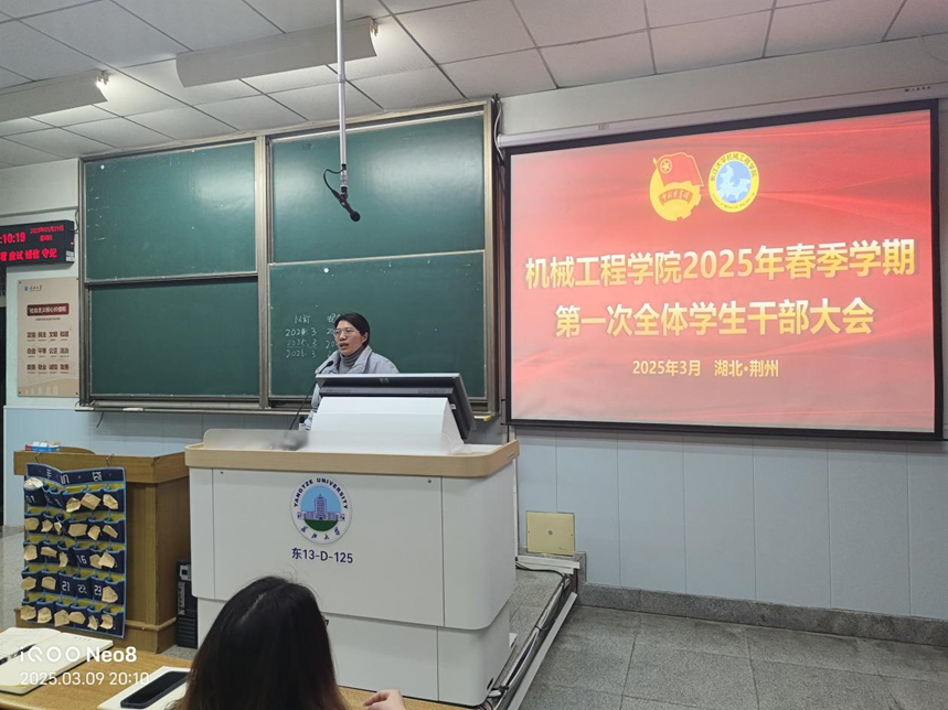 学工办主任代荣荣首先致辞,她对全体员工干部在过去一年中的辛勤付出表示衷心感谢,并以《师生携手逐梦,共绘机械宏图》为主题,详细讲解了本学期员工事务开展过程中需要注意的问题和几项重点工作,希望全体员工干部充分发挥师生之间的桥梁纽带作用,以公司的发展为己任。