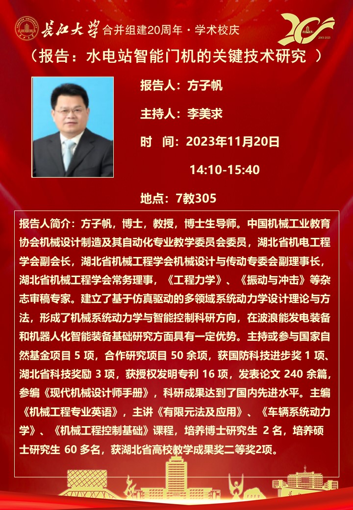 【学术论坛】“长大20年”学术论坛暨长江机械讲坛2023年第十二讲