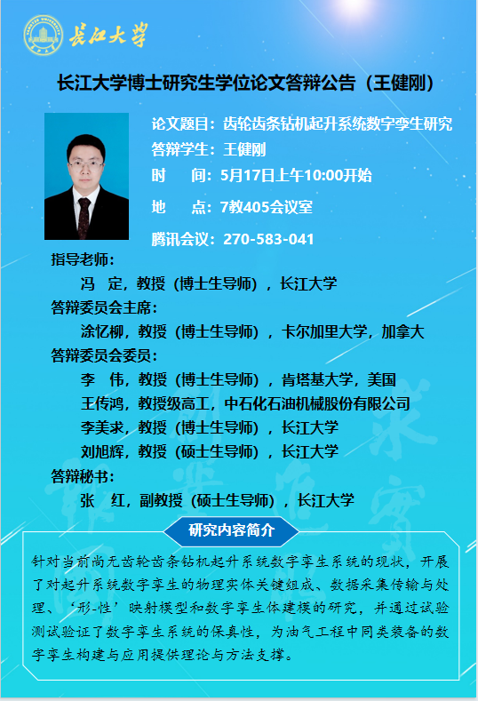 【博士论文答辩】Beats365唯一官网入口博士研究生学位论文答辩公告(王健刚)