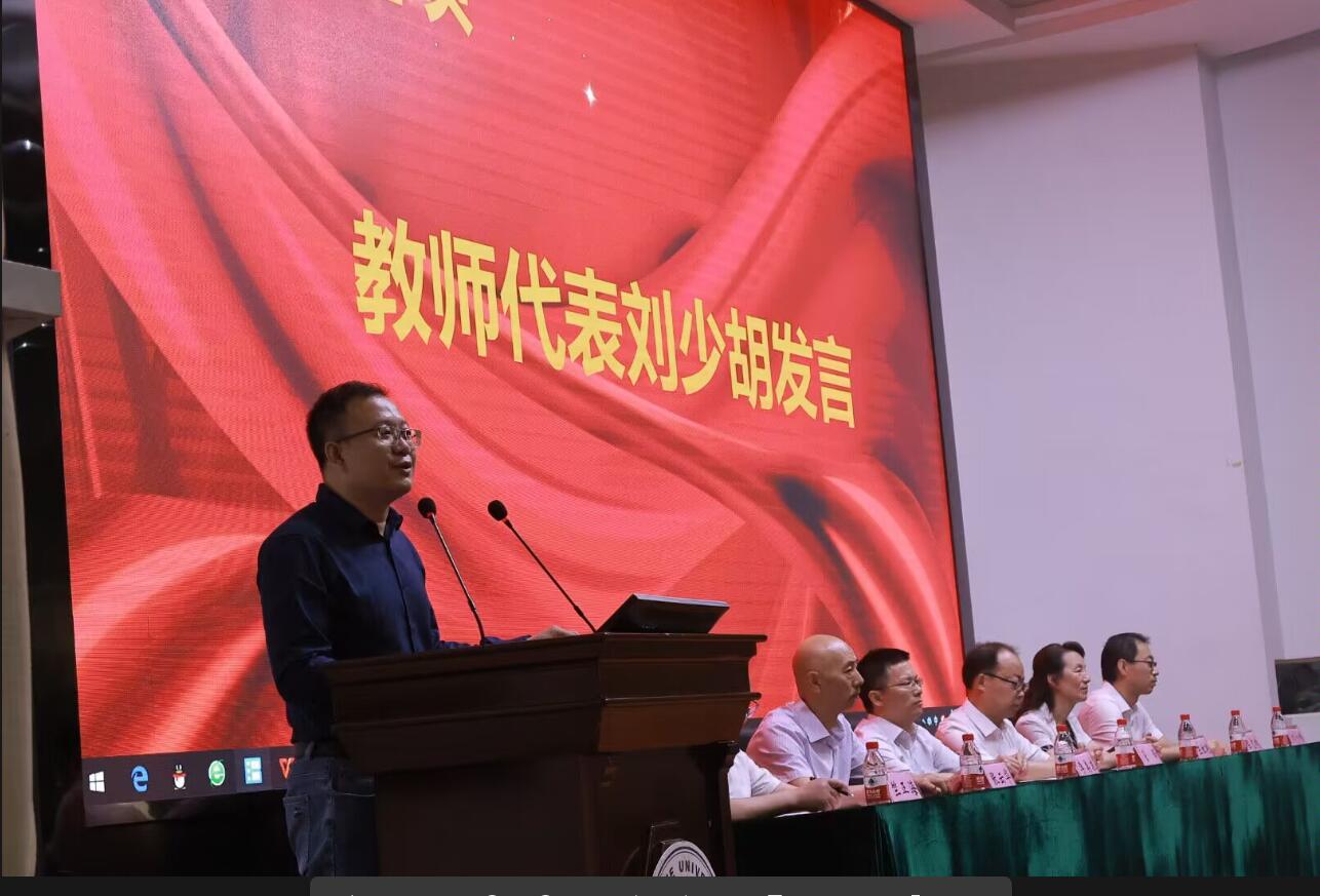 刘少胡教授作为教师代表发言。他希望同学们要坚定信仰,要坚持读书,做一个有理想、有底线、有智慧的机械人。