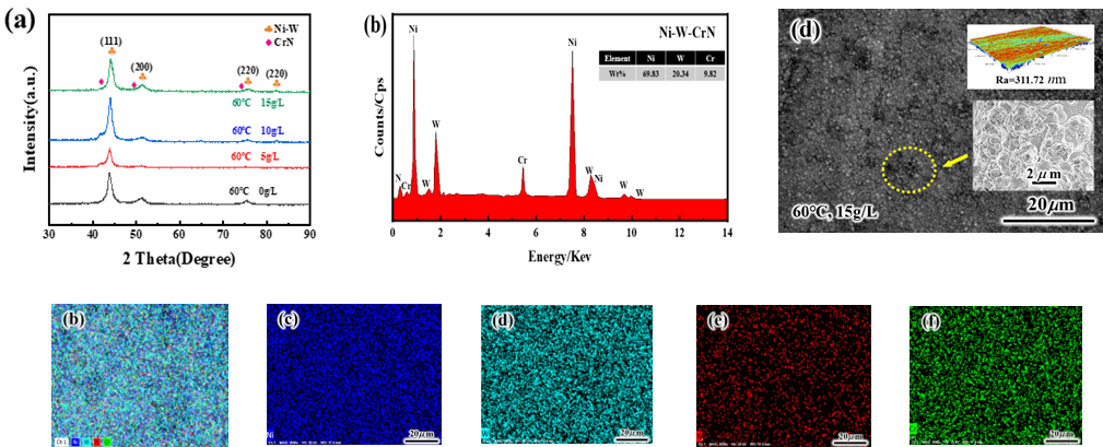 为提高X80管线钢在石油和天然气输送中的耐用性和抗腐蚀性,该研究提出了使用Ni-W-CrN纳米复合涂层的新方法。通过优化电沉积参数,对比不同电流密度和沉积时间,研究了不同CrN纳米颗粒浓度对涂层性能的影响,确定了最优的电沉积条件。通过电化学测试和磨损试验验证了涂层的性能,基于实验结果建立了涂层性能的预测模型。研究发现,10 g/L的CrN颗粒浓度能够显著提升涂层的硬度(达到813 HV)及抗磨损性,同时还具有最佳的抗腐蚀性能。这一发现为X80管线钢涂层的应用提供了科学依据。