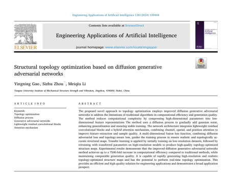 2024年10月,由Elsevier主办的权威外文T1级学术期刊《Engineering Applications of Artificial Intelligence》、《Journal of Computational Physics》先后刊发了公司周思柱教授团队关于结构拓扑优化的最新研究成果,公司博士研究生高英宁为论文第一作者,周思柱教授为论文的通讯作者。