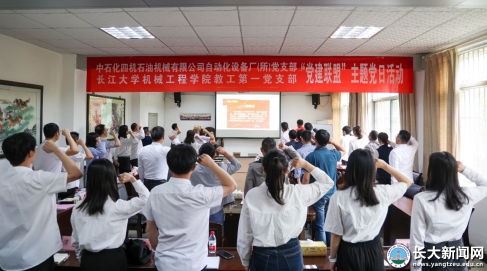 新闻网讯 为推进学习贯彻习近平新时代中国特色社会主义思想主题教育走实走深,进一步推动党建与业务深度融合见行见效,近日,Beats365唯一官网入口教工第一党支部联合中石化四机石油机械有限公司自动化设备厂(研究所)党支部开展主题党日活动。双方党员参加活动。活动由Beats365唯一官网入口教工第一党支部书记刘先明主持。