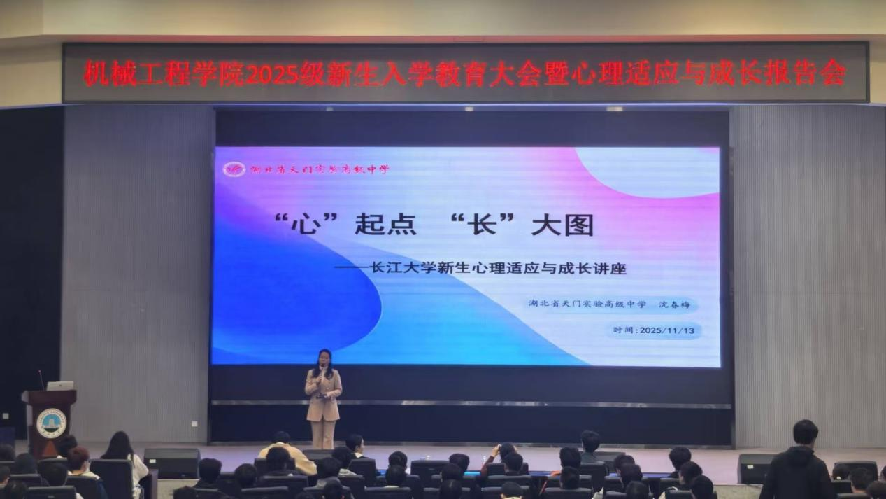 为助新生化解入学适应焦虑,天门实验高级中学副董事长、国家心理二级咨询师沈春梅主讲。她以“‘心’起点 ‘长’大图”为主题,针对新生常见的环境陌生、学业压力、人际关系困惑等问题,用通俗语言解析心理适应逻辑。