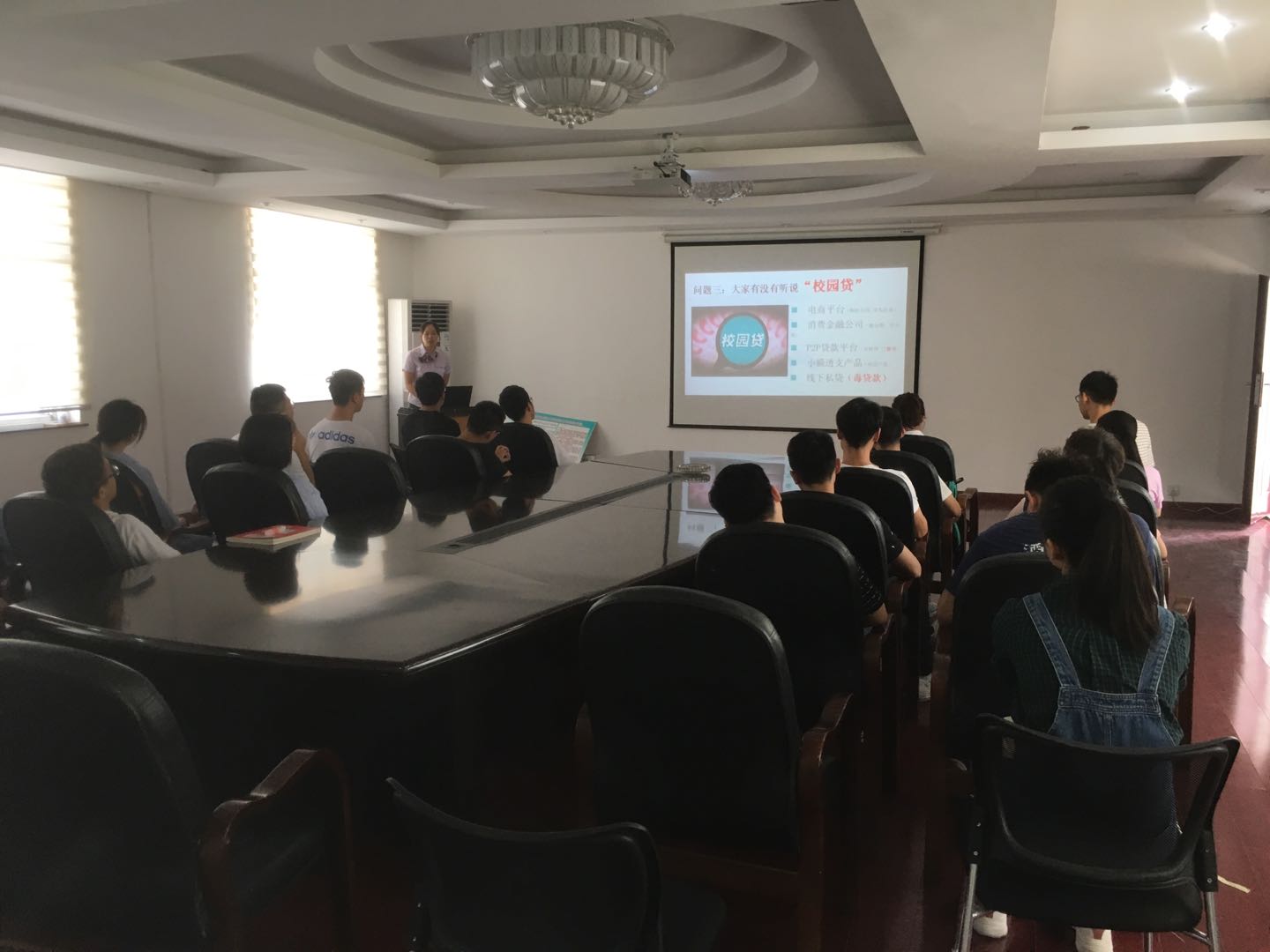 专题培训上,银行工作人员列出了“校园贷”传播的几种途径,如电商平台、消费金融平台、P2P贷款平台、小额透支产品、线下私贷等,呼吁大家要树立正确的消费理念,理性消费,避免由借款后导致各种不良后果。辅导员刘冬冬老师希望同学们认真学习培训内容,落实好班级防范校园贷宣传教育工作。