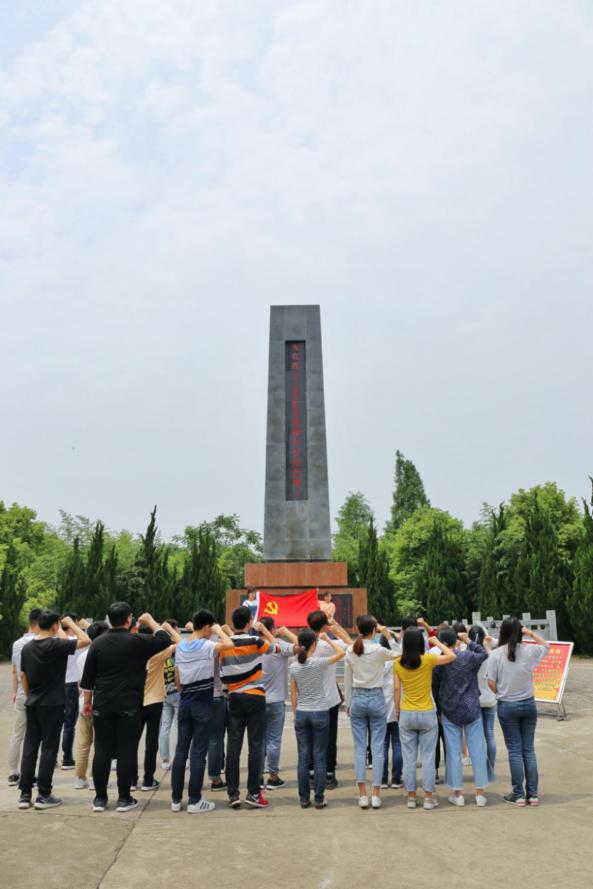 上午11时,集体到达位于湖北省洪湖市西部的瞿家湾镇,参观湘鄂西革命根据地旧址——瞿家湾。下午13时,集体到达湘鄂西苏区瞿家湾革命烈士纪念碑前。在革命烈士纪念碑前,全体支部成员在党支部关明老师的带领下,高举右手,重温了入党誓词,并拍照留念。在庄严肃穆的纪念碑下,支部成员们在重温入党誓词的同时更加坚定了自己作为员工党员的责任和义务,我们应当继承与发扬光荣革命传统,深入学习习近平新时代中国特色社会主义思想,全面发展自己,为建设和谐社会贡献自己的力量,肩负起时代赋予的使命。