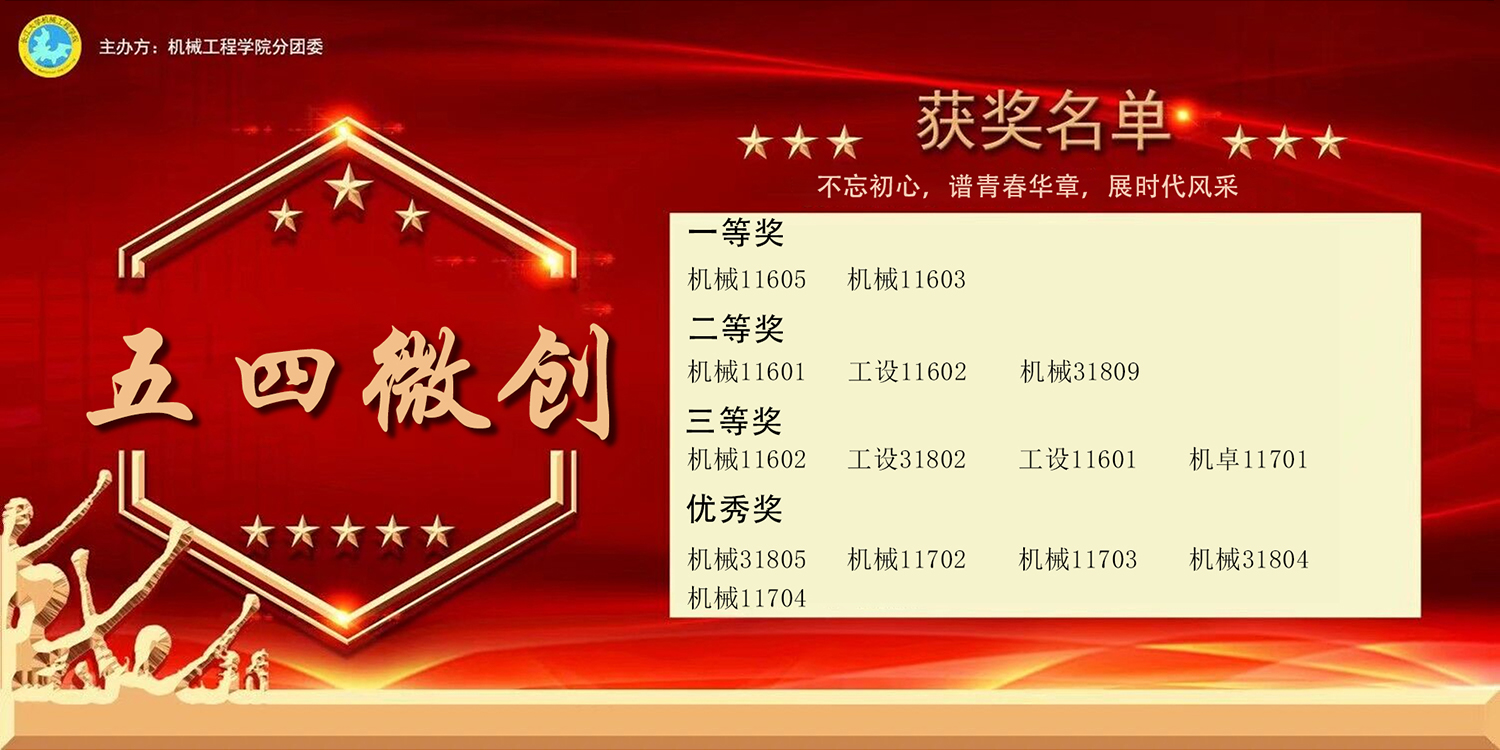 本次大赛的主要流程为参赛班级上交3~5分钟左右的短视频,比赛期间将各班拍摄的短视频在机械公司员工会官方qq上进行展示,评委王喆老师根据视频内容进行评分,计算出参赛班级的综合得分后,按照各参赛班级的得分高低,为获奖班级颁发奖状及奖品。比赛中各参赛班级的视频内容各具特色,富有创意。以下是大赛的最终评选结果: