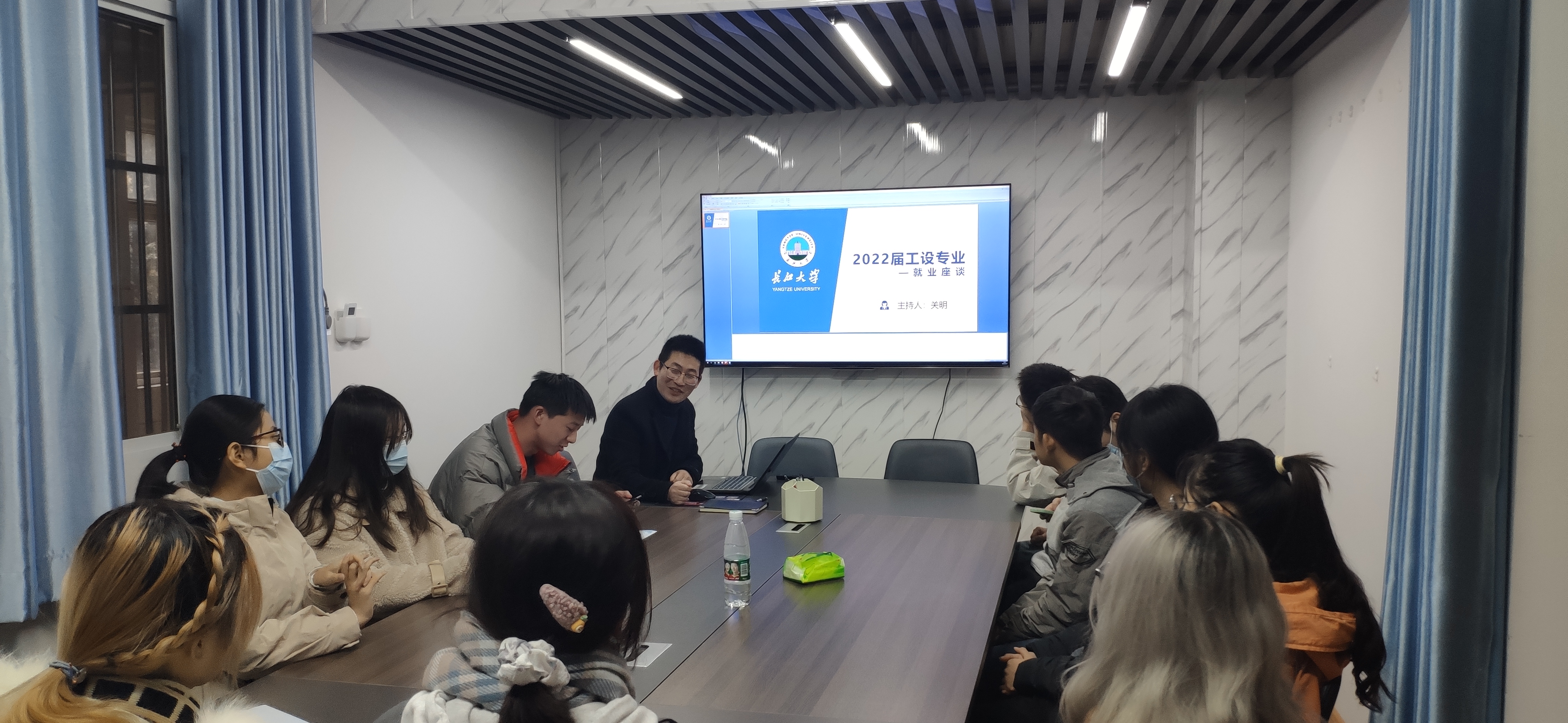 公司就业专干关明老师与工业设计专业的同学进行了就业座谈,帮助同学分析求职问题,并建立求职信心。