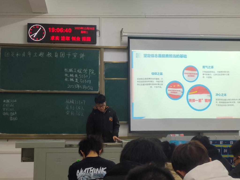 本月以“挺膺担当”为学习主题开展团员和青年教育。在活动中,团员和青年学习了新时代新征程党和国家事业发展的目标任务,也深刻理解了中国式现代化是强国建设,民族复兴的唯一正确的道路。同时,同学们激起了强国有我的青春热情,立志争做有理想,敢担当,能吃苦,肯奋斗的新时代好青年,在中国式现代化建设之中挺膺而出。