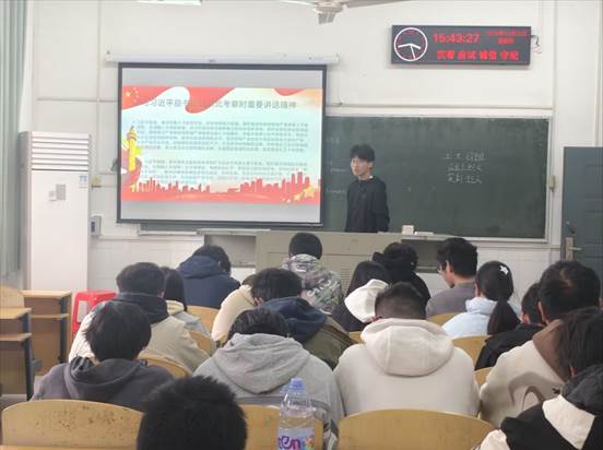 各班级在团支书的组织下学习了习近平总书记的思想。所有同学认真学习了习近平总书记重要讲话精神,领悟讲话精神实质和核心要义,把个人小我融入国家大我,在为国尽责、为民服务中实现个人价值、展现个人风采。