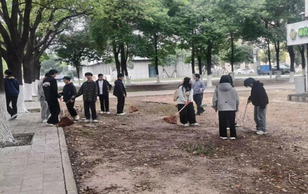 劳动现场,气氛热烈而有序。同学们分工明确、配合默契,清落叶、除杂草、擦设施、运垃圾,每一个环节都一丝不苟,每一个动作都彰显担当。阳光下,忙碌的身影成为校园里一道流动的风景,汗水映照出青春的灼灼光华。不多时,所负责的区域便窗明几净、焕然一新,展现出整洁有序的校园新貌。
